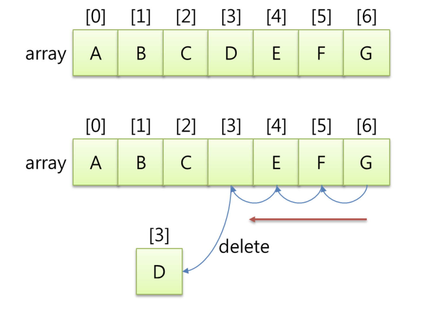 중간값 삭제, 검색, 중간 추가가 어려움.